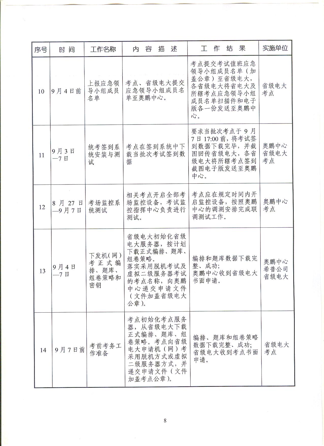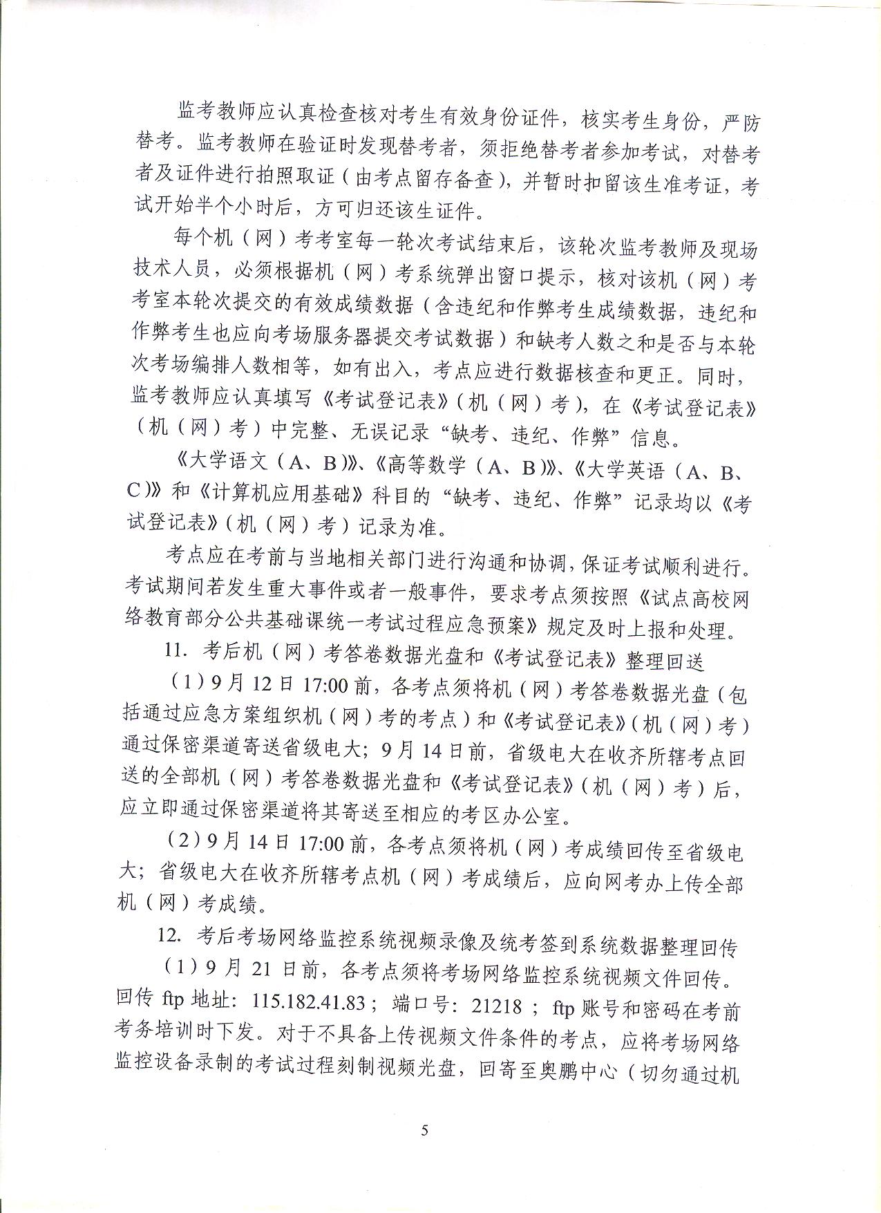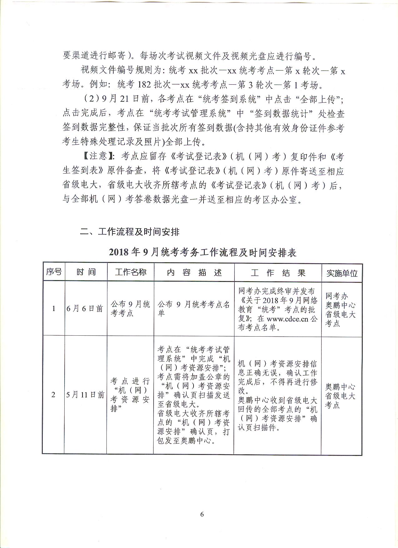2018年9月现代远程教育试点高校网络教育部分公共基础课全国统一考试考务工作实施方案