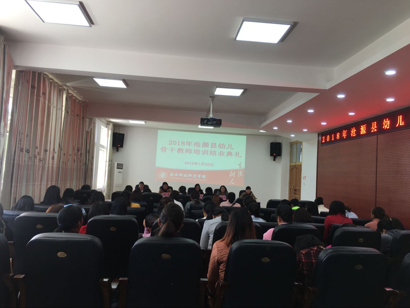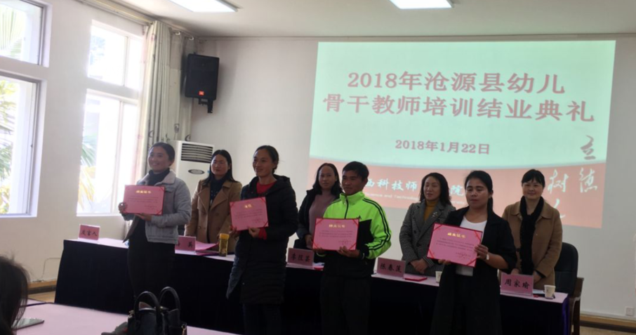 由我校与沧源县教育局共同举办的“2018年沧源县幼儿骨干教师培训班”,经过七天紧张而充实的培训,圆满完成各项培训任务,1月22日下午在我校举行了结业典礼。教师教育学院、继续教育学院等学院负责人、全体授课教师和所有参训的沧源县幼儿骨干教师参加了结业典礼。